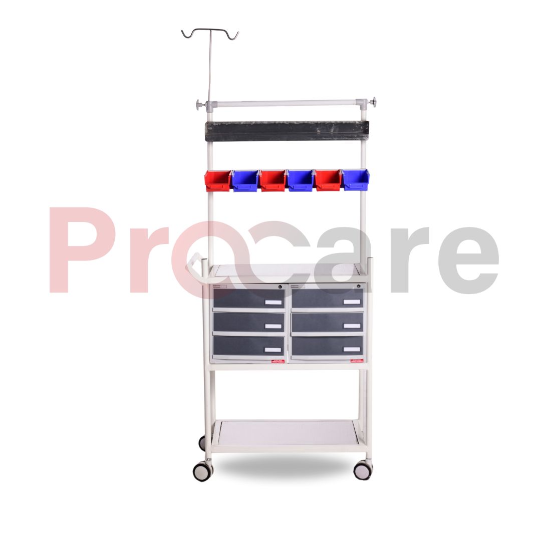 Procare’s Crash cart comes with Six drawers arranged to provide quick access to the required drawers and medicine.