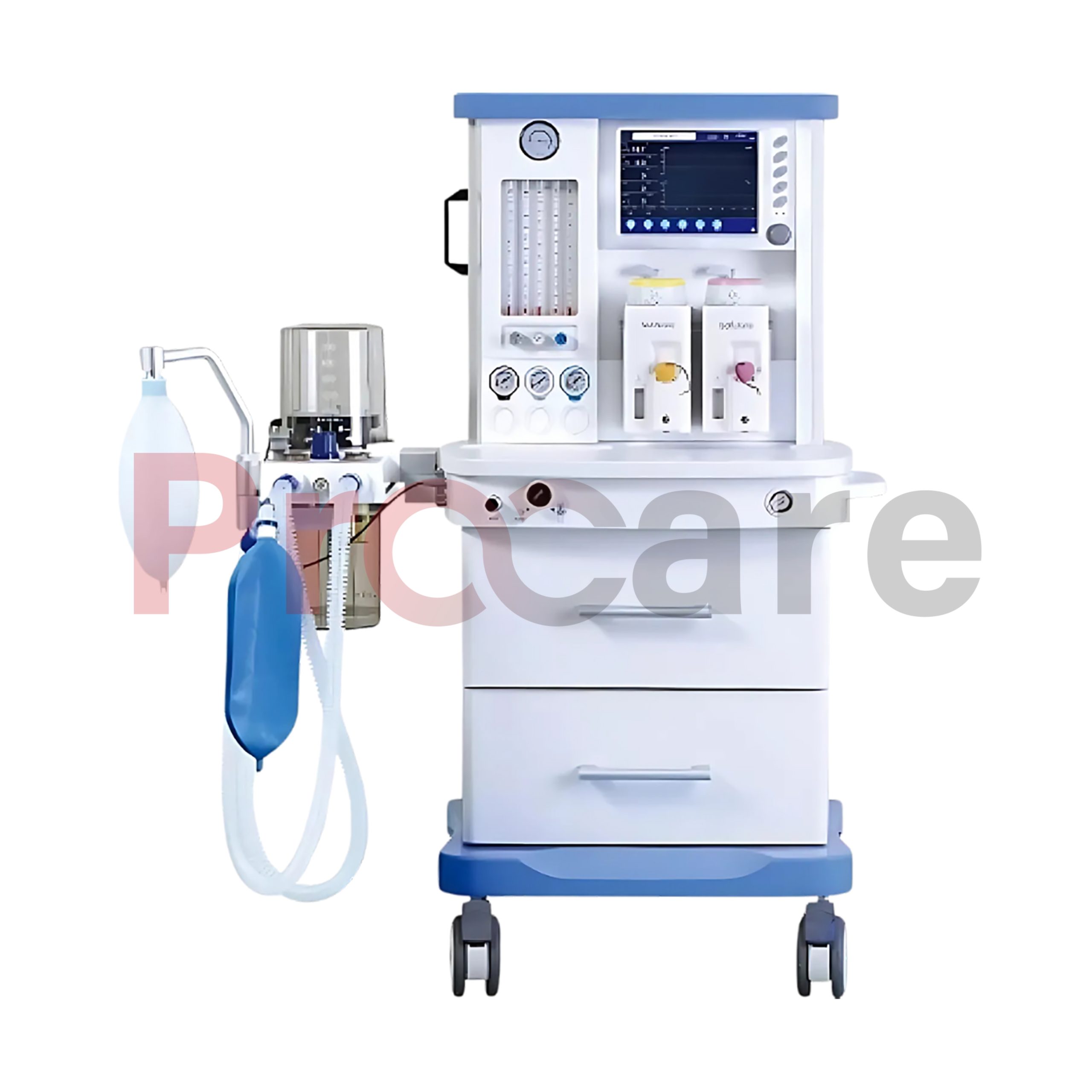 Introducing Procare’ s Anesthesia workstation, the best solution designed for accurate and safe delivery of anesthesia to adult and pediatric patients. This anestheisa machine is equipped with 12 12-inch TFT display, and it provides real-time monitoring and control for different ventilation modes, including VCV, PCV, VSIMV, and CPAP , This machine is the best choice for the Modern hospitals and surgial centers, this anesthesia machine provides the best functionality safety, and ease of use