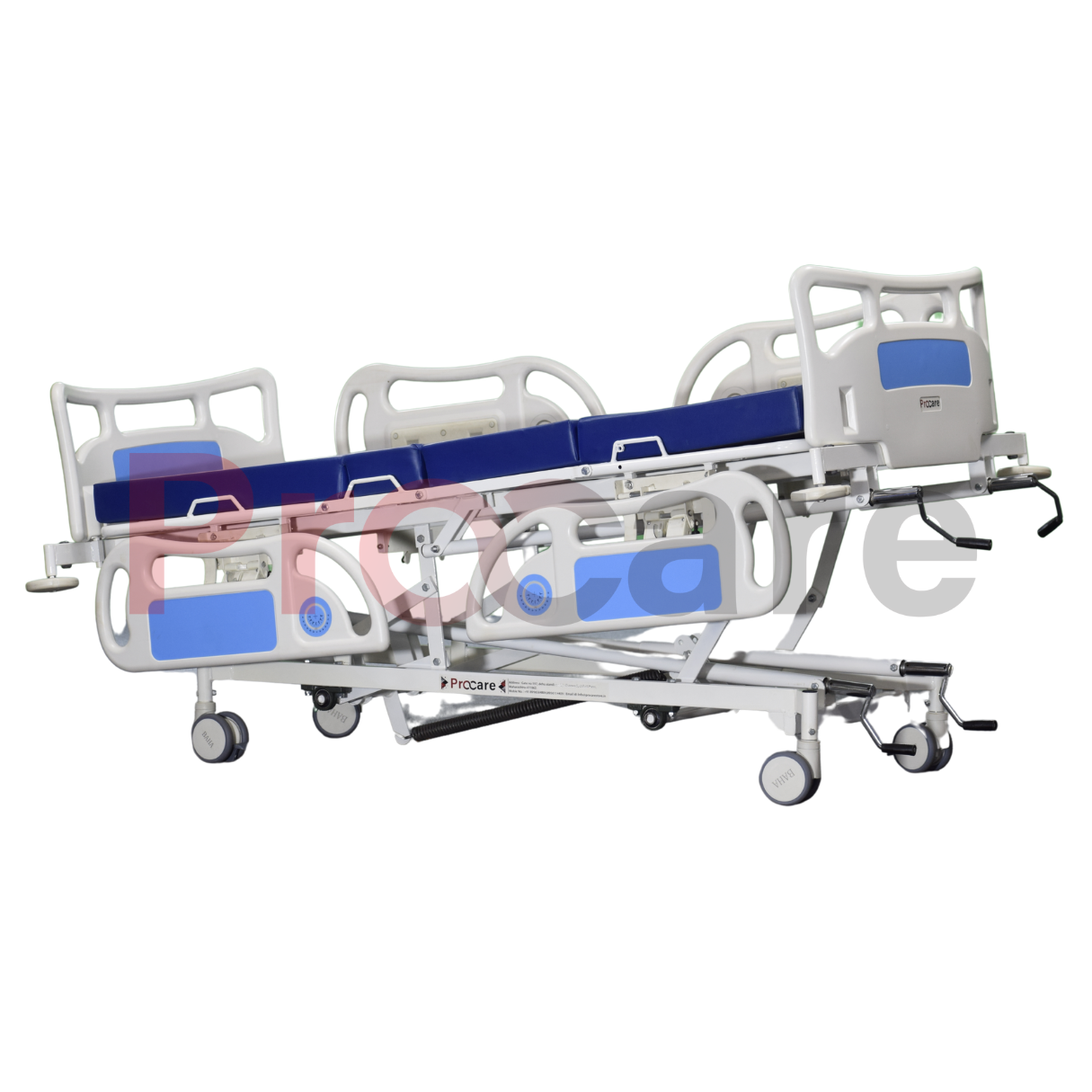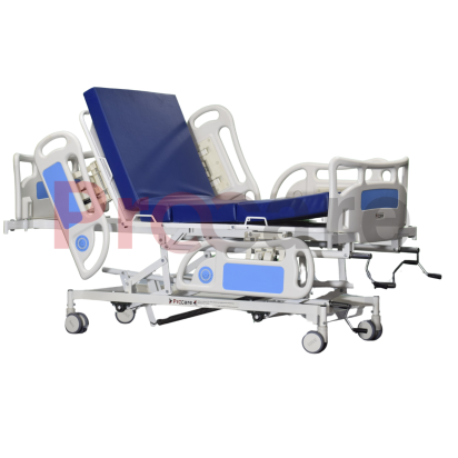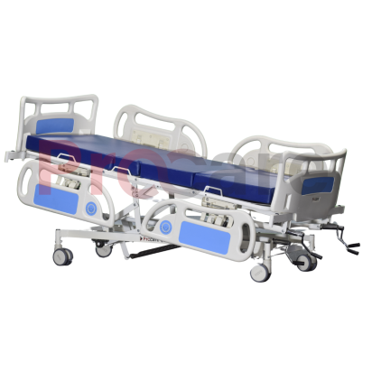 To provide complete patient care and comfort to the patient Procare’s Manual five-function ICU bed offers: a backrest, a knee rest, a Trendelenburg, a reverse Trendelenburg, and height adjustments, features