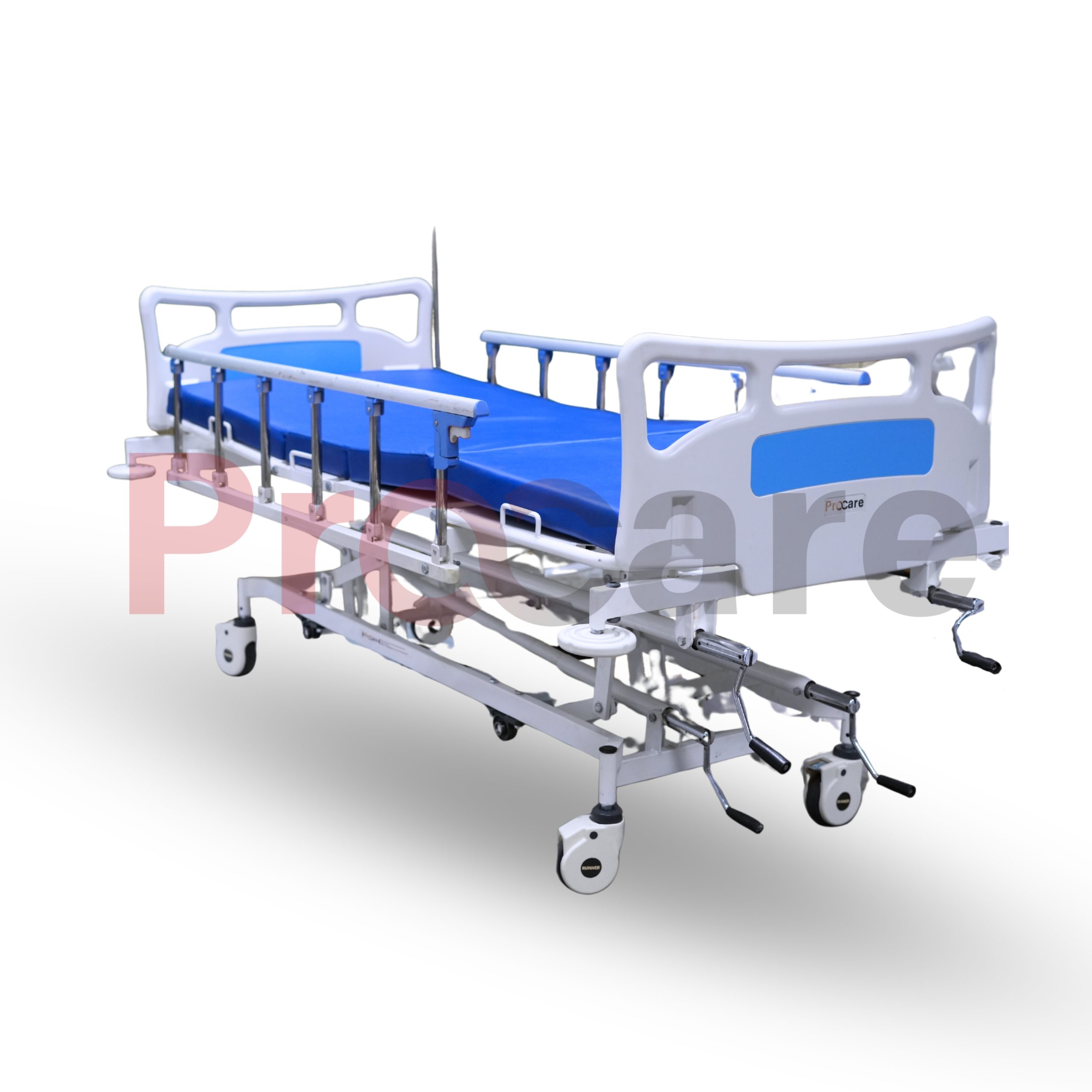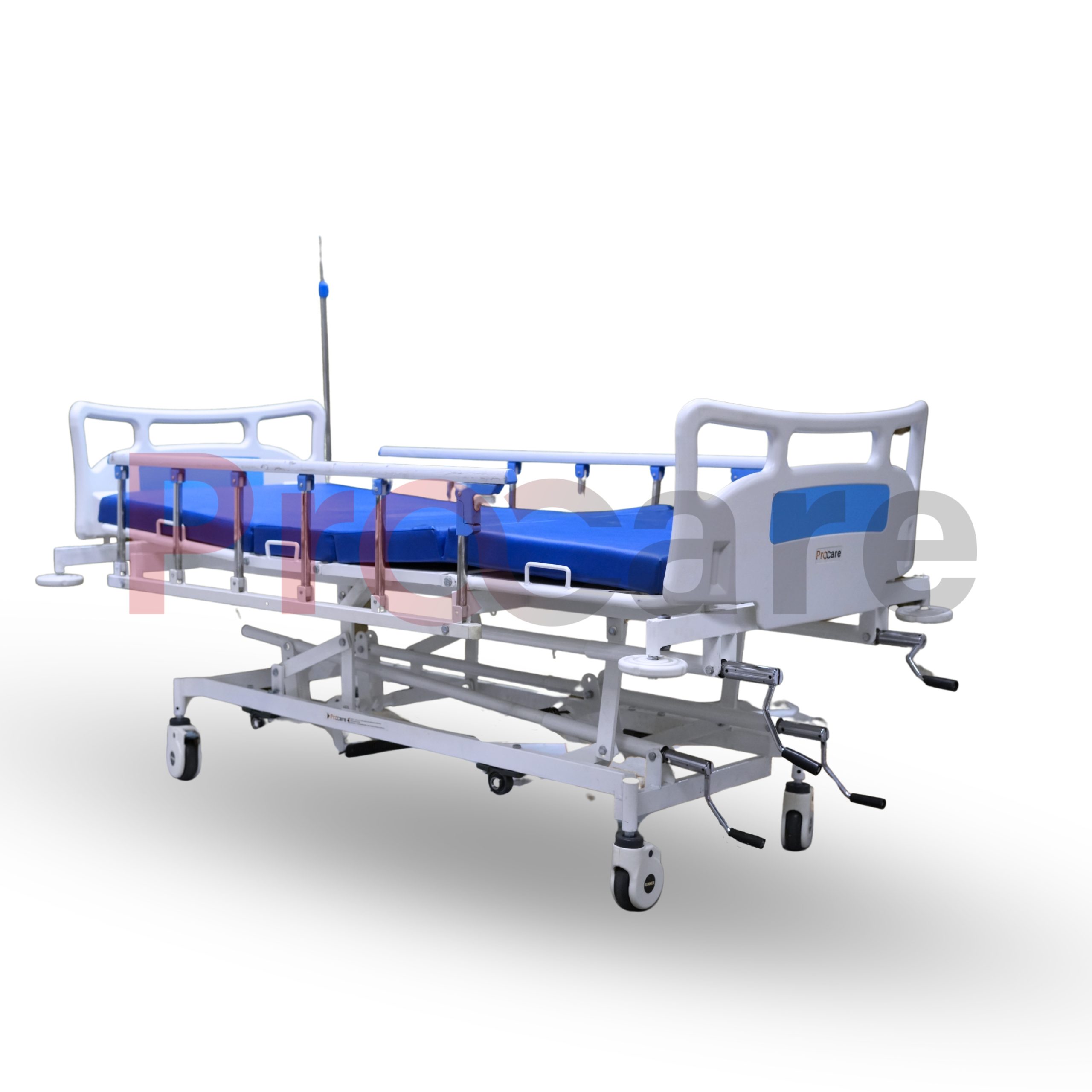 Procare’s Five-function Manual ICU Bed With Collapsible Railings is built to provide the best comfort and care to the patient in any situation. This Manual ICU bed is easy to operate and move and it is the necessary asset of any hospital.